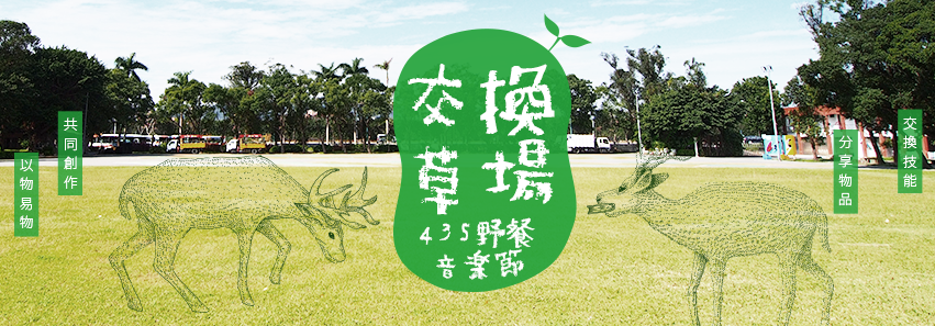 今年秋天,來場最酷的草地野餐吧!由新北市政府主辦、新北市政府文化局承辦的 435 野餐音樂節,這次將打破既定野餐模式,將風靡香港的「交換草場」活動原汁原味空運來台,邀請民眾以「以物易物」、「交換技能」、「共同創作」、「分享物品」四大主題參與,活動還安排有香港「草原地圖」講座、香港藝術家「故事地攤」旅行分享、四組台灣人氣樂團接力演出交流、以及由「#下次一起來」社團響應發起的「衣物易物」二手衣交換活動等。