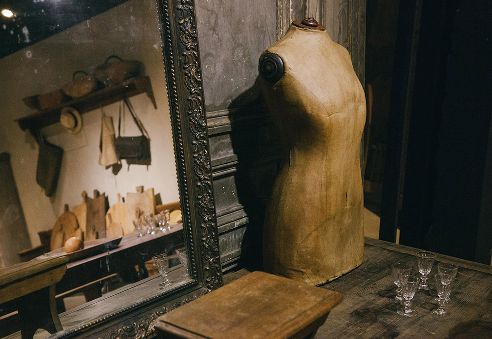 古道具的另一側是 DE STIJL 精選、歐美 19-20 世紀的古董珠寶,這些飾品帶你走向藝術典藏的歐洲風華。每一個串飾和墜飾都有一個故事,更代表著一段歷史,在這裡看到 19 世紀上流名媛必備的「嗅鹽盒」,方知古代美人過得如何辛苦,由於她們多半身著緊身內衣展現曲線,時不時就會昏厥,必須靠著「嗅鹽」來提神,想來讓人驚奇。這裡還展示了幾只別緻的項鍊墜子,以蝴蝶翅膀為材料製成,當你輕輕晃動墜子,就能看見翅膀閃動的模樣,精巧得讓人渴望能細細賞玩。其他珍寶,有待你走進另空間,和那一物一體相互交流,找到屬於自己的共鳴。