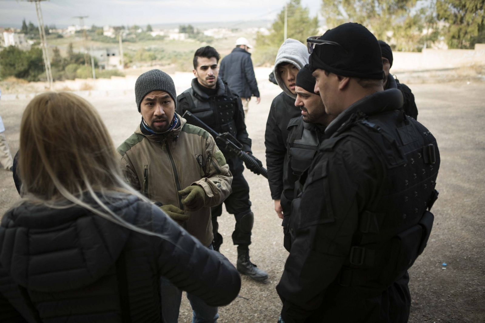 身為台灣第一個赴約旦拍戲團隊,導演蕭力修則表示,海外拍攝變動大,且事前人不在現場,當地的進度無法掌握,其實出發前仍忐忑不安「演員、場景、道具會不會出現?」結果還真遇上原先的動作指導、前約旦軍人嫌工作時間太早臨時開天窗。「我跟黃健瑋當過兵,只好權充動作指導,教臨演們怎麼拿槍才像真的軍人。」