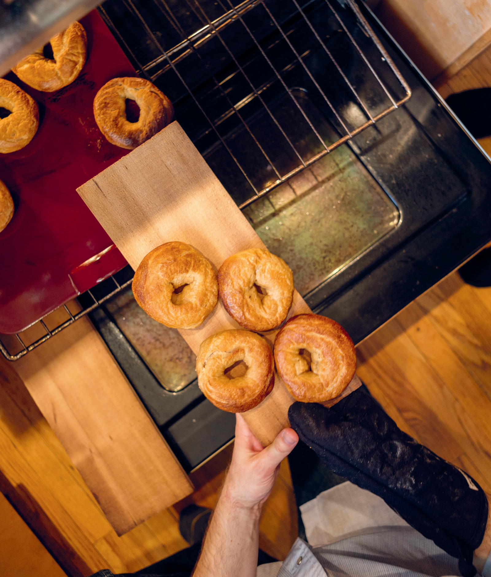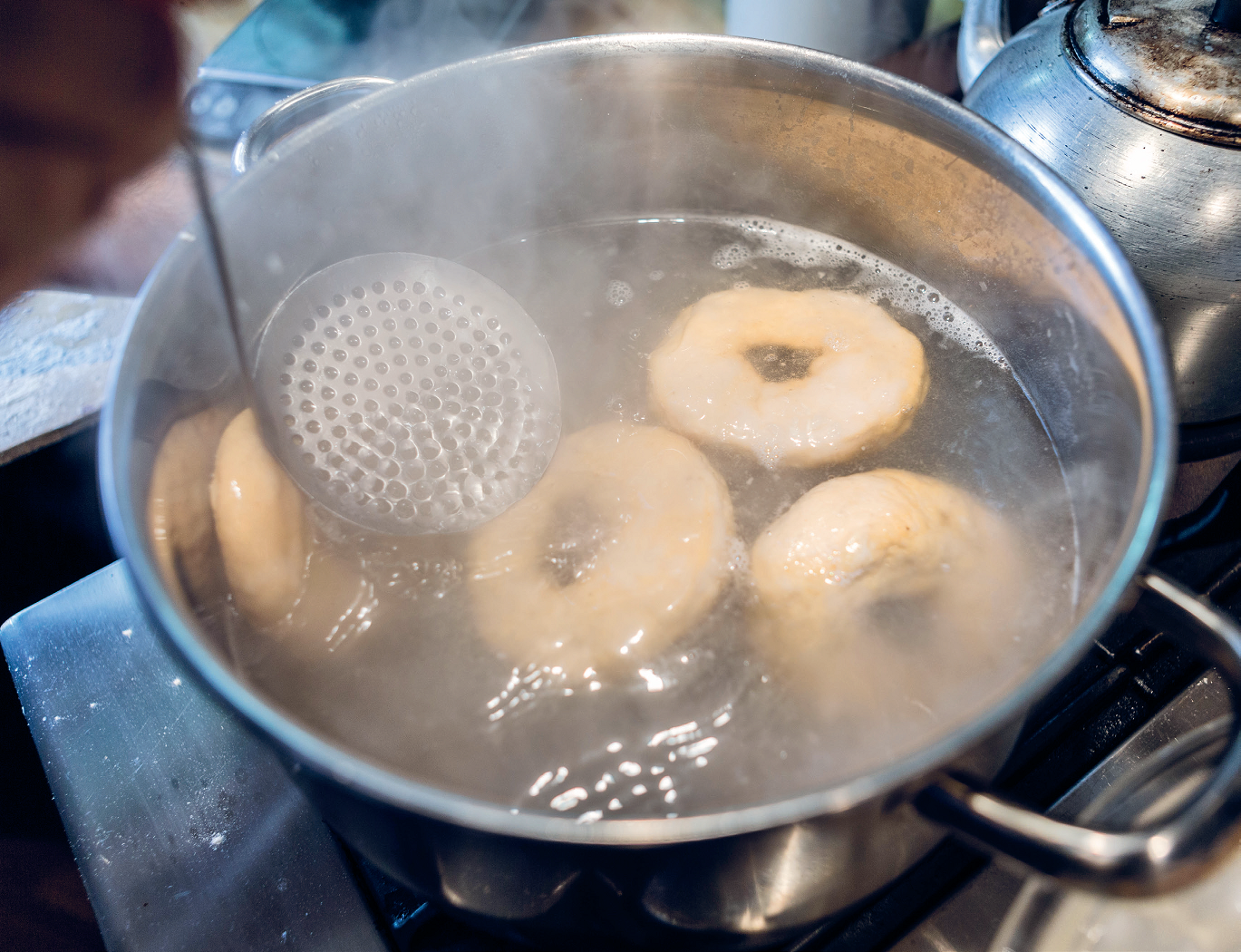 在追求絕妙貝果的過程中,我們一開始先試了幾間在地的店家,但他們賣的是那種讓人懷疑的組合,試著玩花樣來遮掩品質不佳(或是說非常差)的事實。有時候,當我看到在賣的貝果口味——南瓜葡萄乾、巧克力碎片、青醬、墨西哥辣椒起司等等——我都懷疑自己究竟是在「班與傑瑞冰淇淋專賣店」(Ben & Jerry’s)還是「塔可貝」(Taco Bell)墨西哥餐廳。