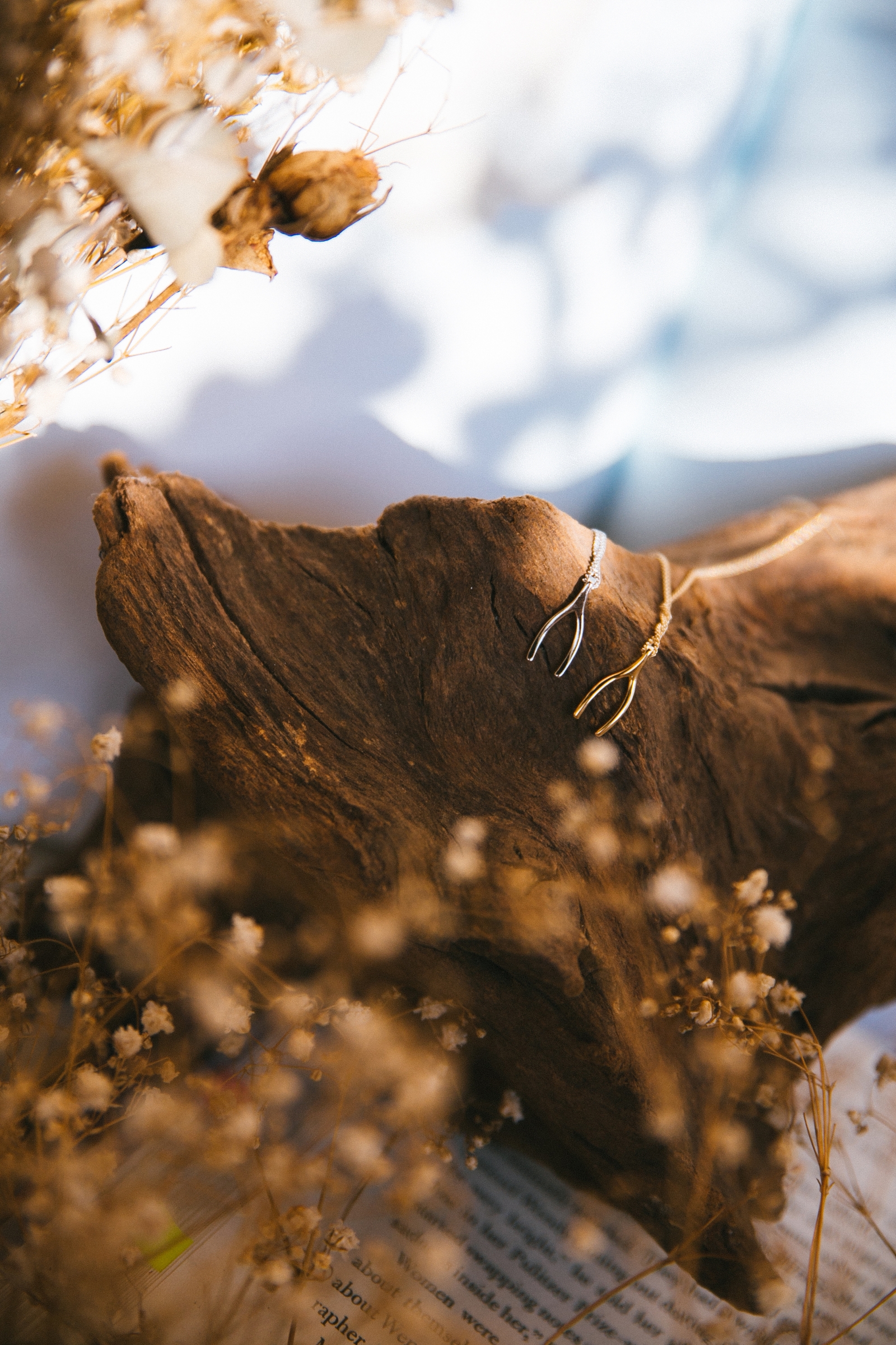 Wishbone 許願骨,是在美洲地區流傳已久的幸運護身符,不需要將斧頭投入池中坐等女神的應許,只要讓小巧可愛的許願骨停留在鎖骨上,願望就可以實現,或純銀或 K 金,都由你決定。