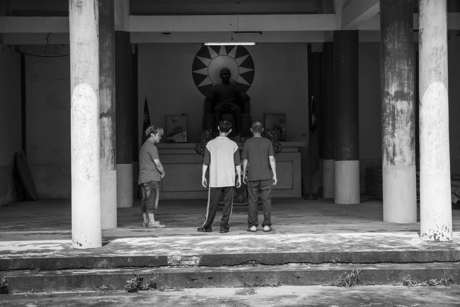《大佛普拉斯》情節由製作大佛為核心自然不是沒有原因,宗教在裙帶關係中往往是最不受約束而危險的一環,慣用虛無主義(就像電影中的「鸞文」只會寫些空泛的內容)控制社會。該片從宗教出發,又延伸到政治,電影中看似荒謬的「去中正廟收驚」的情節,將台灣目前內部殖民(註一)、對蔣中正認賊作父的認同錯亂等,狠狠地嘲笑一番;那句台詞「神明也是會挑人」,更是將宗教、法西斯沆瀣一氣的嘴臉表露無遺。在這結構之下,窮人永遠只能撿菜尾,片中肚財的遺照,甚至還是被警察逮捕時所照。