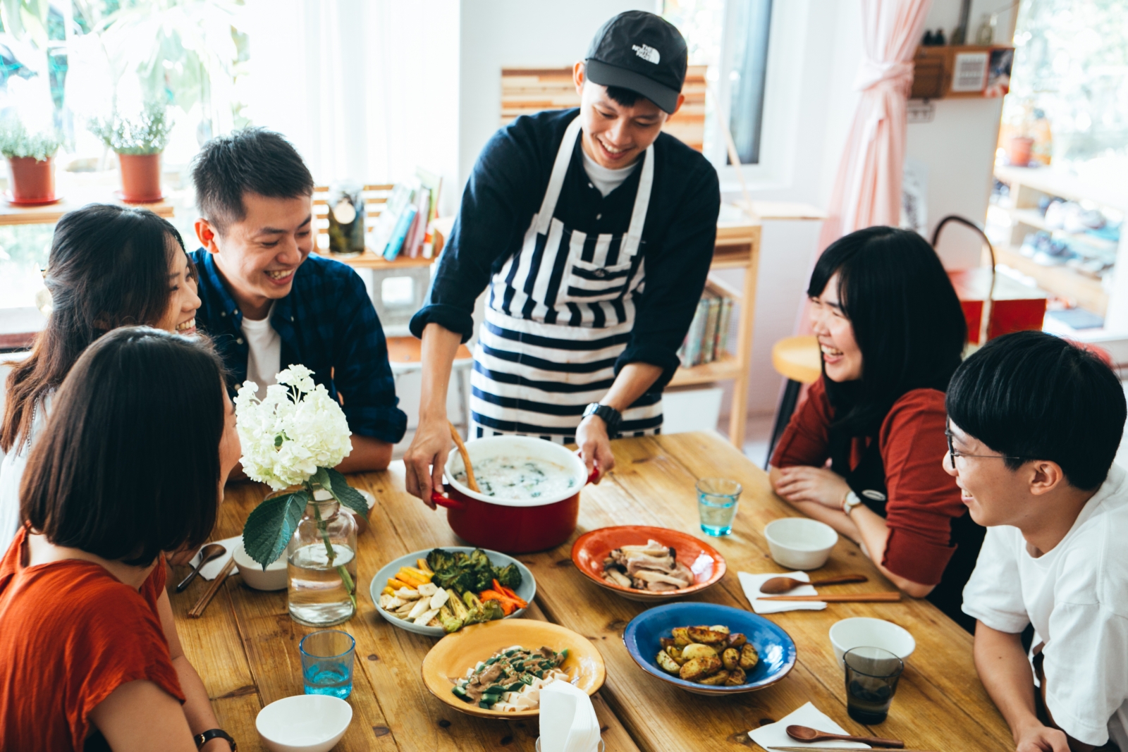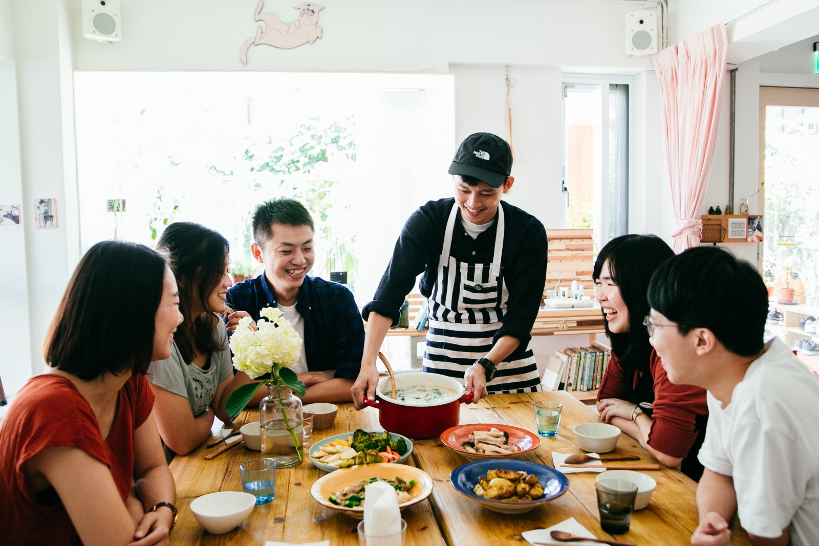 聽著大家分享了編輯甘苦,工作型態和大家不盡相同的 Ayo 則回憶今年最深刻的一役是在文博會的活動做飯糰便當,「我想把以前喜歡的一些老菜色,用新的形式轉換出來。」他說這概念也成了至今料理的走向,也變成今日讓大家身心飽足的一餐。 「那你忙完一個案子之後都怎麼犒賞自己?」看著辛苦為大家張羅一桌美食的 Ayo,頤華忍不住提出疑問。「我會去大吃一頓!」Ayo 爽快地回答,「我也是要靠大吃來舒緩壓力!」一旁的士恩大聲地附和。