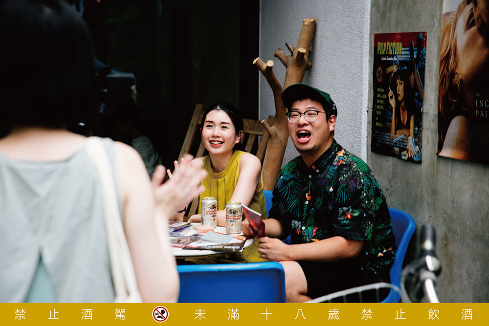 明明聊著辛苦的事,但卻充滿陣陣笑聲。在這充滿掙扎的快樂之中,大家開了啤酒。要在緊繃的工作中放鬆,電影和啤酒兩者都不可或缺,有著相似的魔力——微醺一下,就像進入電影世界一下。那個世界並不和現實相同,但也不完全不同;讓人同樣著迷的是,到達彼端後我們可以放下現實的負擔,等到完全放鬆、回來之後,還能繼續努力。開了啤酒之後,三人回想起了更多「第一次」——放膠卷影片時第一次看到 35 mm 的放映機;第一次實現天馬行空的行銷 idea;第一次因為影展而認識心悅誠服的認真導演;第一次因為太愛,苦勸老闆買下版權⋯⋯