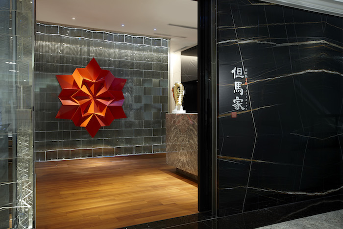 但馬家涮涮鍋二館延續日本知名設計師——橋本夕紀夫於本館的「摺紙」設計概念,入口以濃厚日本味的赤紅花朵般摺紙意象,吸引眾人目光,此次於簡約線條及色彩中加入赤紅元素,為但馬家涮涮鍋二館的開幕帶來喜氣美好寓意。