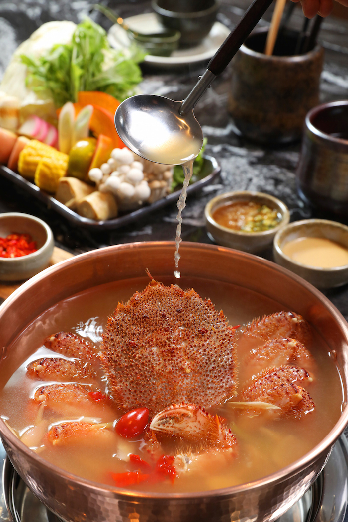看似簡單的日式涮涮鍋,首重食材品質與鮮度,但馬家涮涮鍋自本館即堅持選用鮮活海鮮,約八成為日本生食級海鮮,開幕期間正值秋蟹最肥美之際,除了花蟹、大沙公、黃金蟹之外,更不乏日本三大名蟹毛蟹、松葉蟹、鱈場蟹,其他另有與台灣漁船合作供應的當日現釣漁獲及澎湖直送海鮮。但馬家涮涮鍋二館進階設置「藍海光鮮百寶箱」,匯集不同海域的海洋珍饈,將各種姿態色彩的海鮮嵌入壁面,靛藍海水折射出瀲灩光芒。更可現場挑選由師傅現撈處理,讓客人零時差食得最鮮美滋味。